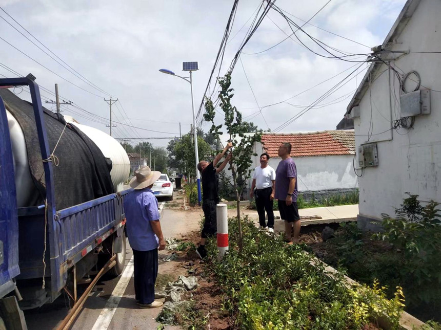 张兴龙在征集村干部群众意见建议的基础上,确定好树种栽种范围、种类和数量,带领村“两委”人员全面开展了绿化种植工作。为确保绿化种植工作有序开展,取得扎实成效,栽种过程中,张兴龙不惧天气炎热,主动扛起铁锹,带头捡杂物、清理场地、栽树苗…经过3天的辛勤劳动,顺利完成绿化种植。