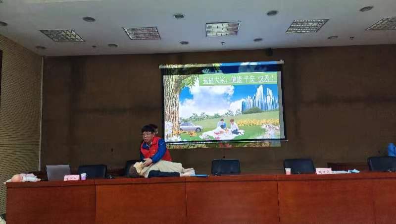徐主任围绕“呼吸道梗阻的现场救护、脑卒中的现场救护、急性冠脉综合征的现场救护、现场心肺复苏”四个方面进行了讲解,特别是对“海氏急救法”及心肺复苏的具体操作进行了详细的讲解,授课过程中采用理论与实操相结合的方法,给在座的广大职工上了生动的一课。