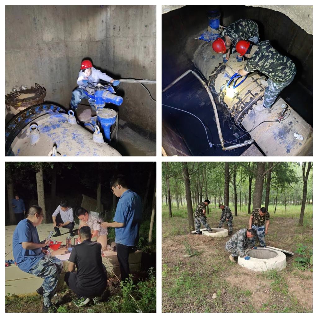 此次工作任务,组织有序、分工合理,工程部三组人员6月1日下午15点就到达现场,检查准备,16点准时开启停水操作,22点停水工作完成后并对调流调压阀进行抢修清理,6月2日上午10点完成供水工作。经过20多个小时的共同努力,迁改合头工作顺利完成通水。