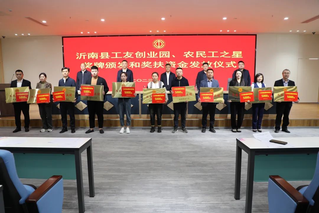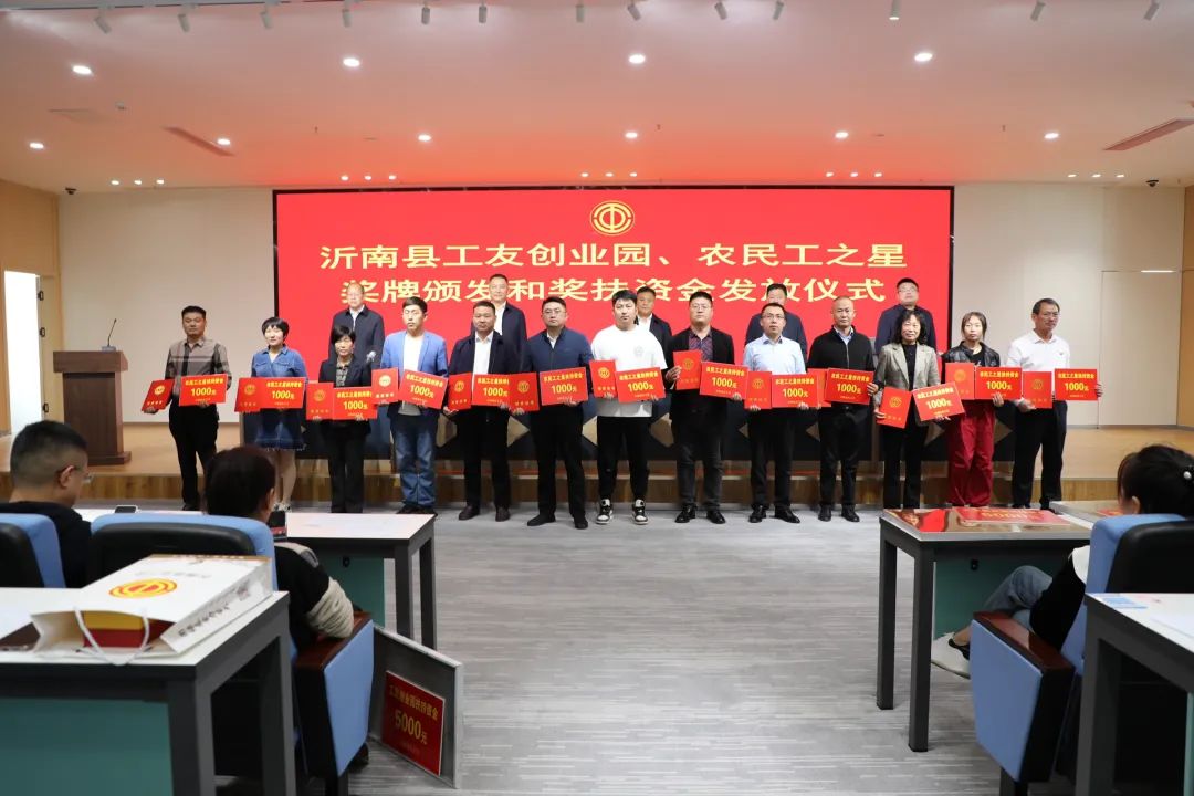 与会人员首先参观了两家工友创业园,会上宣读了《关于沂南县2023年被公布为省级“农民工之星”,市级“工友创业园”和市级“农民工之星”、全市“工友创业”优秀个人情况的通报》、《关于命名沂南县“工友创业园”和“农民工之星”的通报》、《关于取消部分企业“工友创业园”称号的通报》,举行了奖牌颁发和奖补资金发放仪式,部分乡镇围绕工友创业助力乡村振兴进行了交流发言。