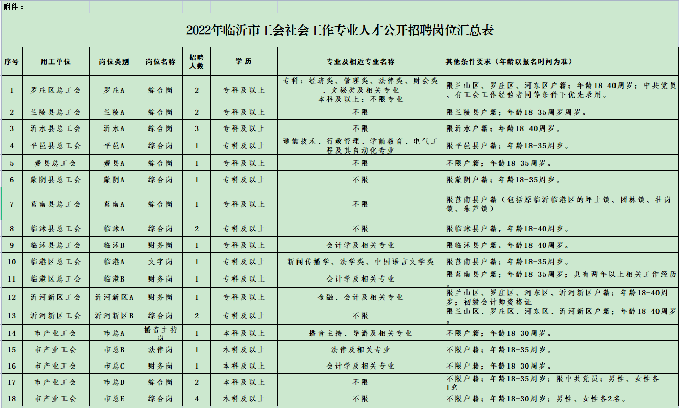 附件:临沂市工会社会工作专业人才公开招聘岗位汇总表