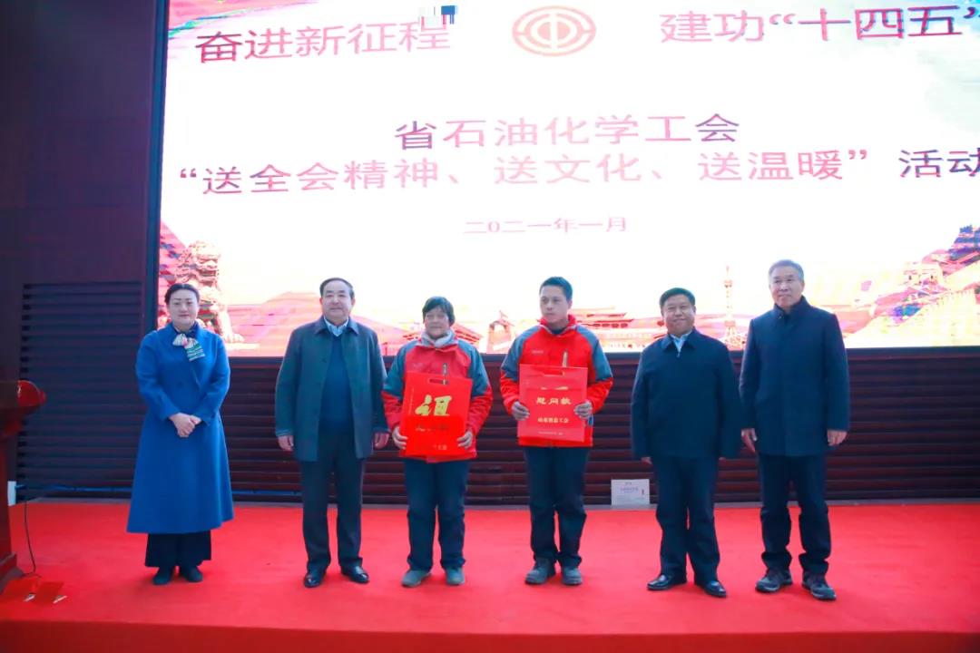 期间,慰问组在临沭县举行了省石油化学工会“送全会精神、送文化、送温暖”活动仪式,宣讲五中全会精神,邀请部分书法家现场为职工群众写福送福;赴临沂市新工人文化宫建设工程现场、时代楷模赵志全同志纪念馆调研参观。