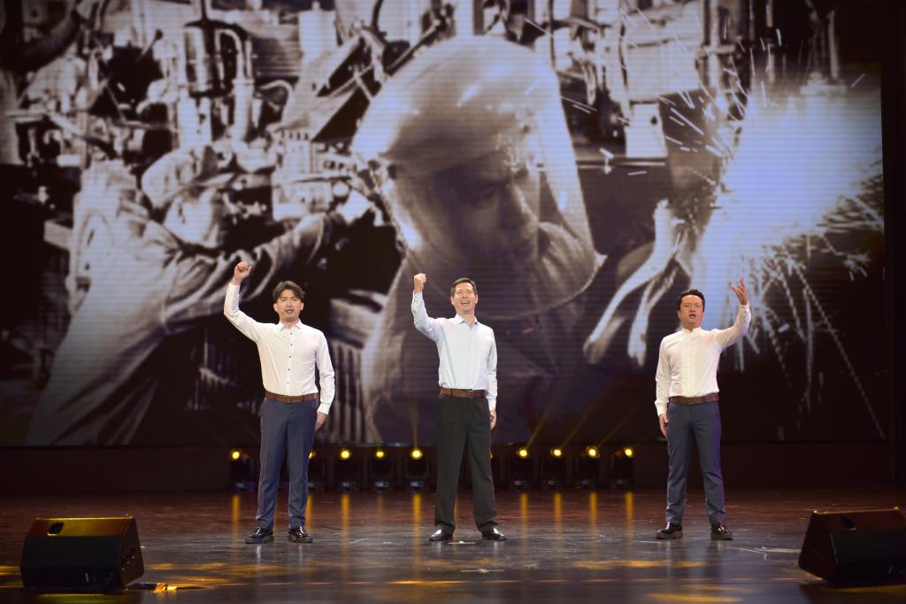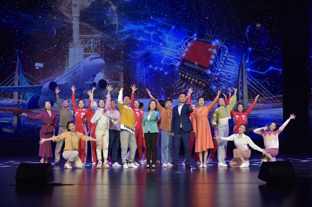 演出最后,著名歌唱家陈思思倾情演唱主题歌曲《奋斗进行曲》,“东方破晓飘红旗,华夏雷鸣现曙光。风雨不动势如虹,沙场挥戈凯歌扬……”昂扬奋进的旋律和歌声为演出画上句号,深深激励着每一位与祖国同成长、与时代齐奋进的劳动者和奋斗者。