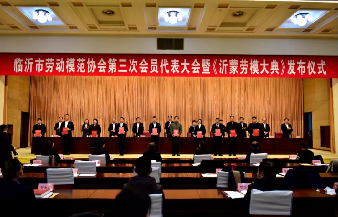 大会举行了《沂蒙劳模大典(2006-2021)》发布仪式。《沂蒙劳模大典(2006-2021)》是市总工会着眼建党百年、助力高质量发展而实施的一项重点工程,旨在进一步在全市大力弘扬劳模精神、劳动精神、工匠精神和沂蒙精神,激励引导包括先进模范在内的全市广大职工,为新时代现代化强市建设再立新功。编纂工作于2020年12月正式启动,历时近1年,于今年10月编写完成。大典编入了自2006年1月至2021年5月,临沂市行政区域内的市级及以上各级劳模,全书约60万字,共收录1598名劳模人物,其中全国劳模(包括享受待遇者)35人,省级劳模(包括享受待遇者)381人,临沂市劳模(包括享受待遇者)1182人。