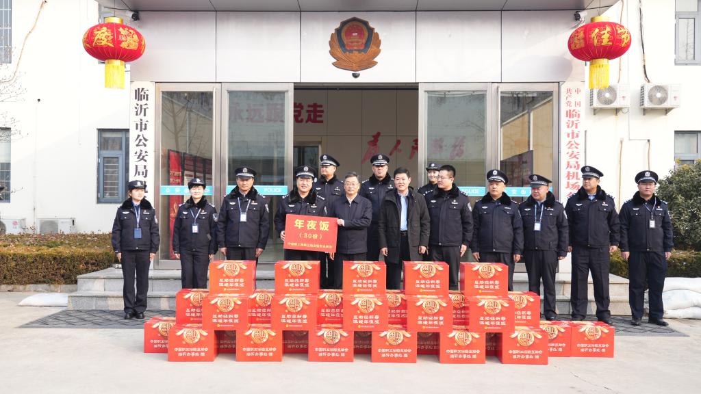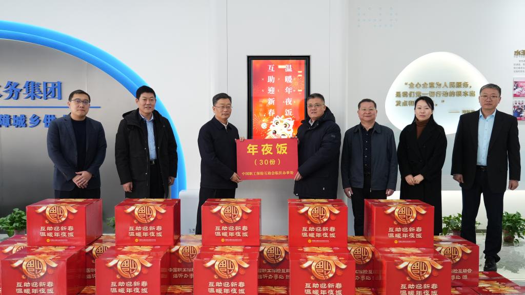 为关心关爱春节期间坚守一线岗位职工,2月9日,临沂市总工会、中互会临沂办事处开展“互助迎新春·温暖年夜饭”活动。市人大常委会副主任、市总工会主席刘飞带队走访临沂机场、市公安局机场分局、临沂市水务集团有限公司、临沂市新城热力集团有限公司等单位,为全市春节期间保障城市、群众生活基本运行的公安、电力热力、水务、卫生、物流、外卖等行业一线职工班组送去“年夜饭礼包”。