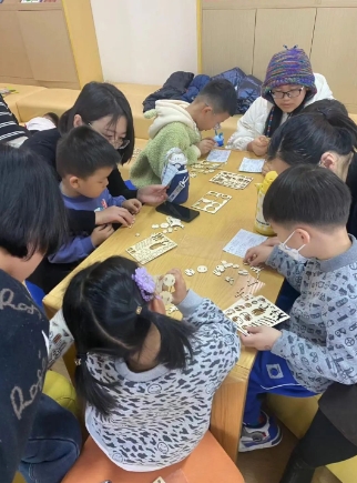 活动中,亲子教育老师带来了宫西达也的虫子武士系列绘本之一《独角三十郎-为你而活着》,主角独角三十郎不仅武艺高强,能以一敌多,还四处惩强扶弱,宣扬正义。它行侠仗义赶走了欺负弱小的蟑小强,蟑小强找到了绿豆蝇和剪刀虫来报复三十郎,它们之间发生了令人热血沸腾又感人泪下的故事,每一只虫子都被赋予了特殊的角色,他们有些是生怀正义的勇士,而有些则是在经历同伴的牺牲、对手的相助之后发生转变,善与恶之间或许并不是绝对的黑与白,随后,孩子们拿起工具开始制作木质独角仙,呼应绘本主题,加强动手能力,和独角仙武士一起宣扬正义。